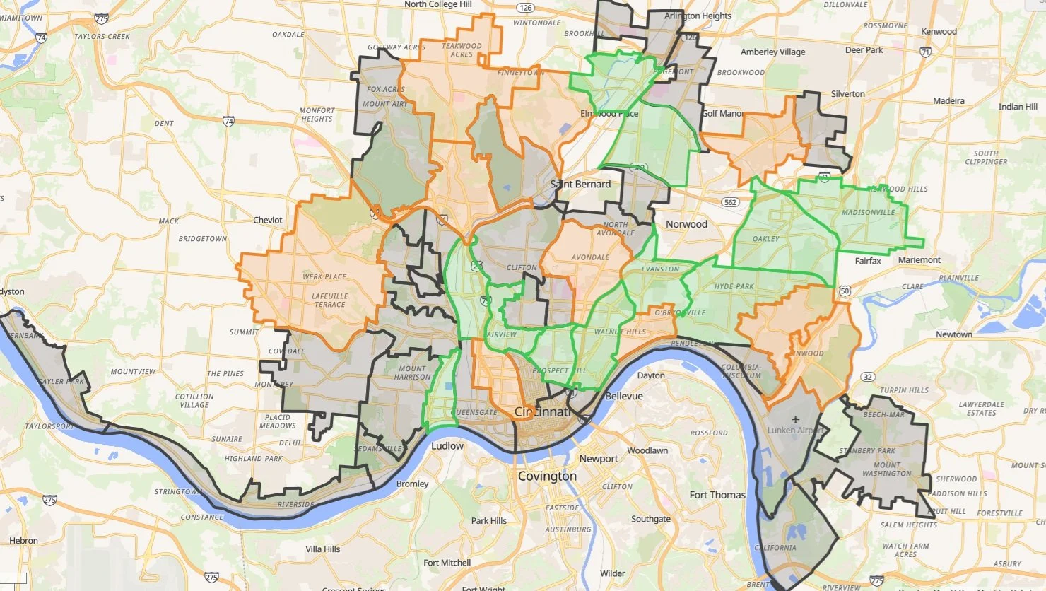 Whether or not a neighborhood has a Tax Incremental Financing district(s) is also included on the map. For more information about TIF availability and processes for applying for TIF please visit the City of Cincinnati’s website here: https://www.choosecincy.com/districttifs .